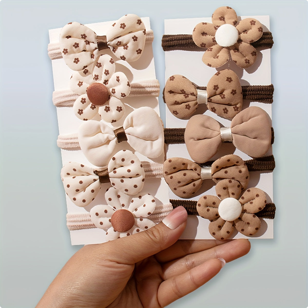 10pcs Elastic Hair Ties with Cute Floral & Bow Designs - Beige/Brown/White/, Stretchy Hold for Ponytails, Buns, Braids - No-Slip Hair Accessories for Women, Girls, Everyday & Sports - Easy to Use & Hand Washable, Small Hair C