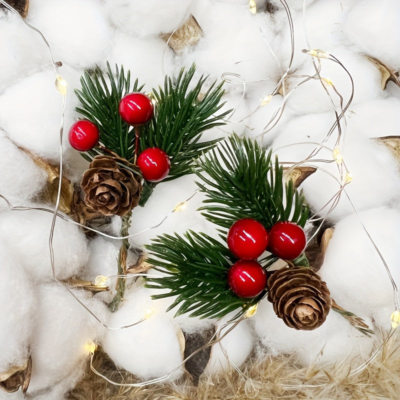 11pcs Artificial Pine Cones and Red Berries Set - Christmas Tree Toppers, Holiday Decorations, Craft Projects, Festive Home Decor, Christmas Decorations, Christmas Decor, Christmas Home Decor, Artificial Flowers