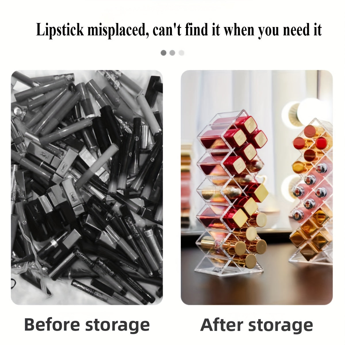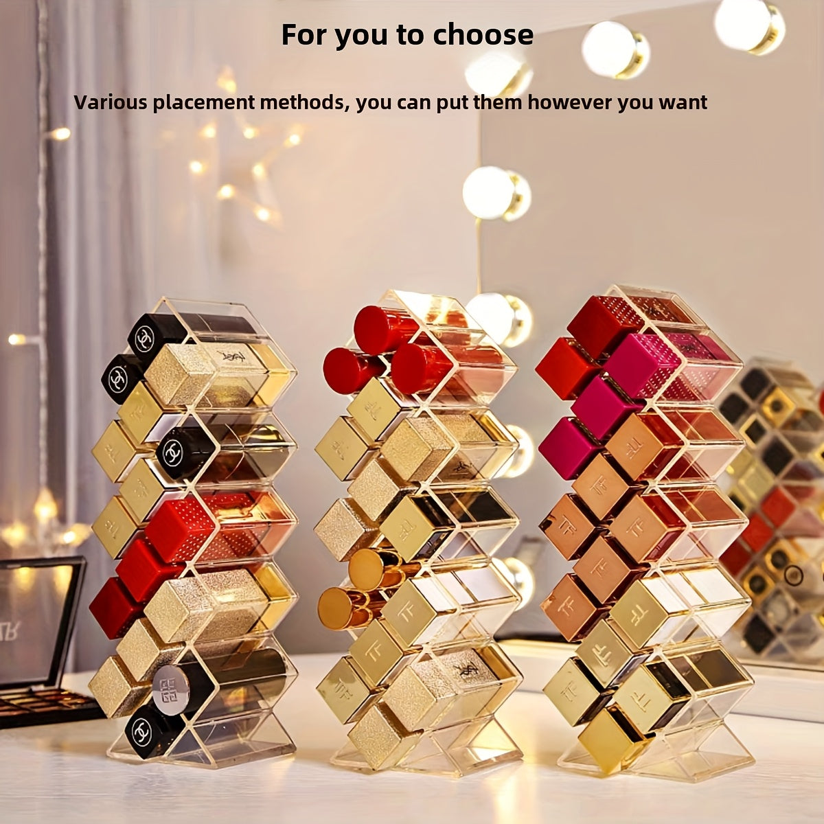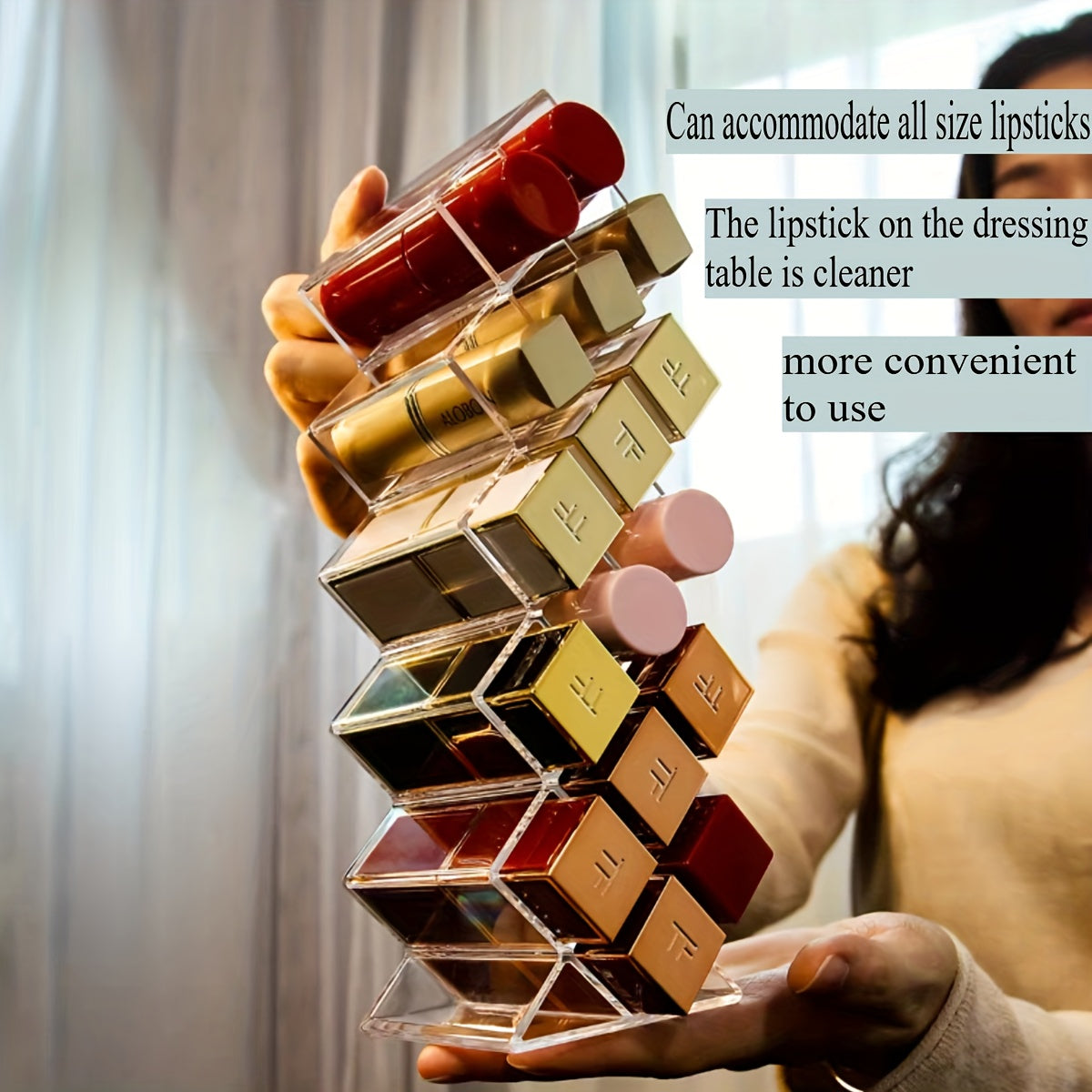 16-Compartment Transparent Lipstick Organizer - Durable Plastic Makeup Storage Box for Vanity or Bathroom Counter, Lightweight & Portable, No Power Needed, Vanity Accessories