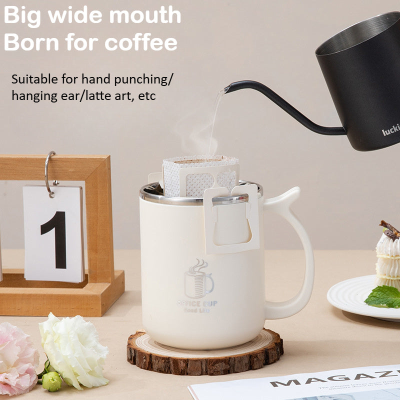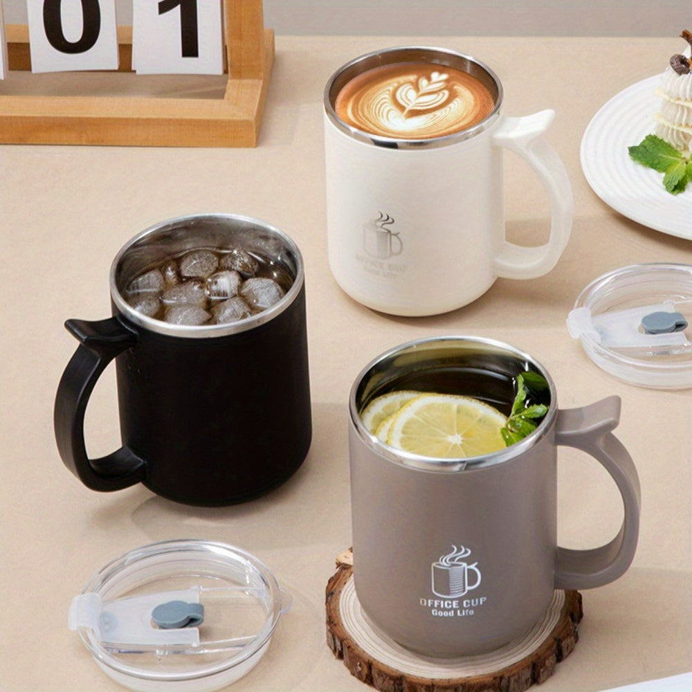 1pc 16.9oz/500ml Stainless Steel Insulated Coffee Mug with Lid & Handle - Double Layer Thermal Cup for Hot & Cold Beverages, Ergonomic Design, Keeps Drinks Hot/Cold for Hours, Durable & Stylish Student/Office Use, Coffee Trav