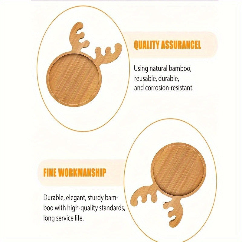 1pc Holiday Deer Bamboo Plate - Mini Sushi, Fruit & Dessert Serving Tray with Natural Wood Finish, Reusable Christmas Party Centerpiece & Snack Display, High-Quality Recycled Wood for Festive Table Decor, Holiday Table Decor
