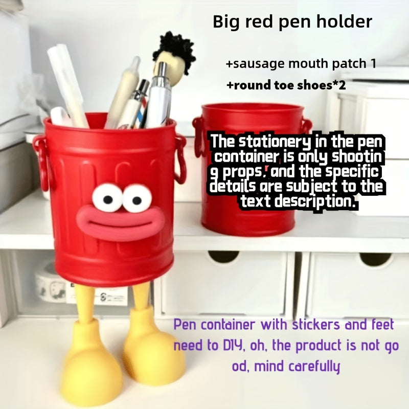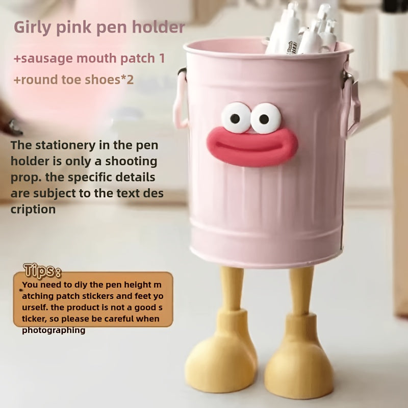 3pcs Set Cute Smiling Face Pen Holders with Expressive Eyes & Mouth - Heavy-Duty Plastic Desktop Storage Organizers with Green & White Lids, Labelled Compartments for Office & Home School Supplies, Fun Desk Organizer Set (Ide