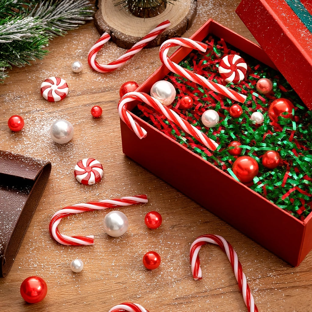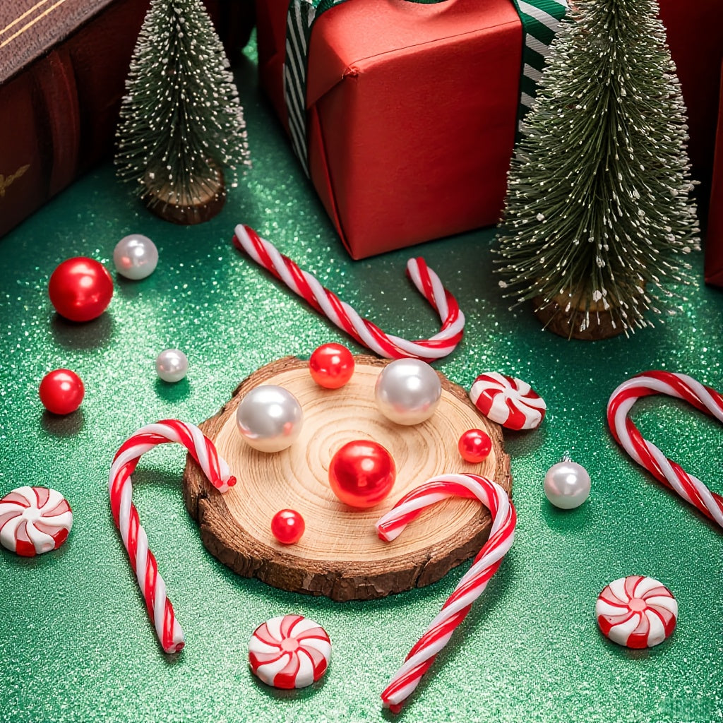 531pcs, Floating Beads for Centerpieces Vases, Vase Fillers, Christmas Vase Filler, White and Red Fake Candy Cane Decor, Christmas Table Decor, Christmas Vase Fillers for Home Table Decorations, Christmas Home Decor
