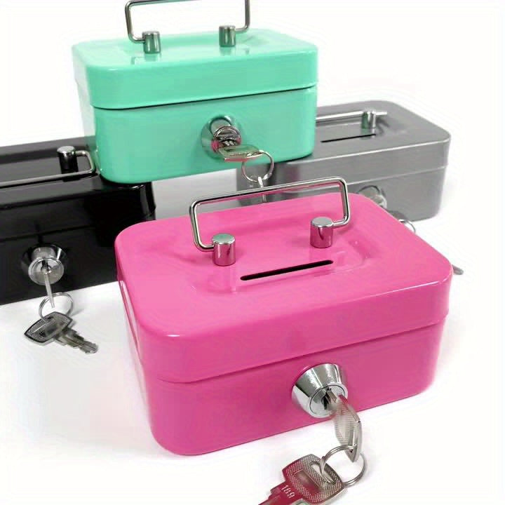 [Two Colors Optional]1pc Metal Key Lock Storage Box, Money Box, Adult Safe, Coin Safe, Adult Safe, Safe, Cash Register 4.5 * 3.8 * 2.3 Inches / 11.5 * 9.9 * 5.8 Cm